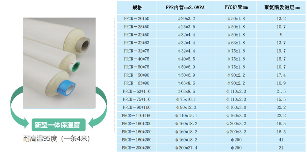 新型PPR保溫管采用聯(lián)塑PPR熱水內芯管+聚氨酯發(fā)泡保溫層+PVC(PE)外套保護層,三層緊密閉合,中間無縫隙、無空氣層,保溫效果極優(yōu)。